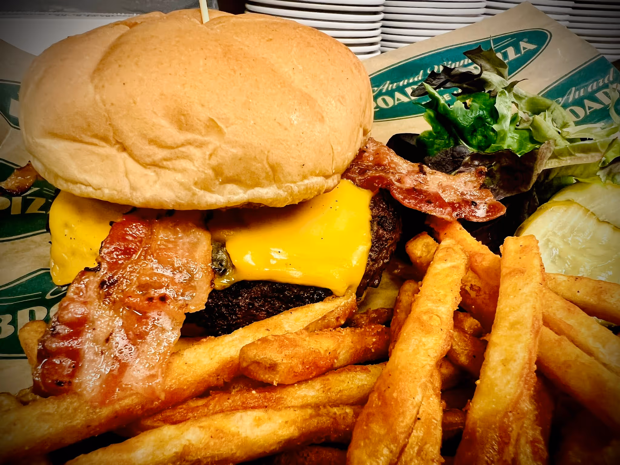 midwest angus beef, flame grilled with crisp bacon & melted cheese of your choice.