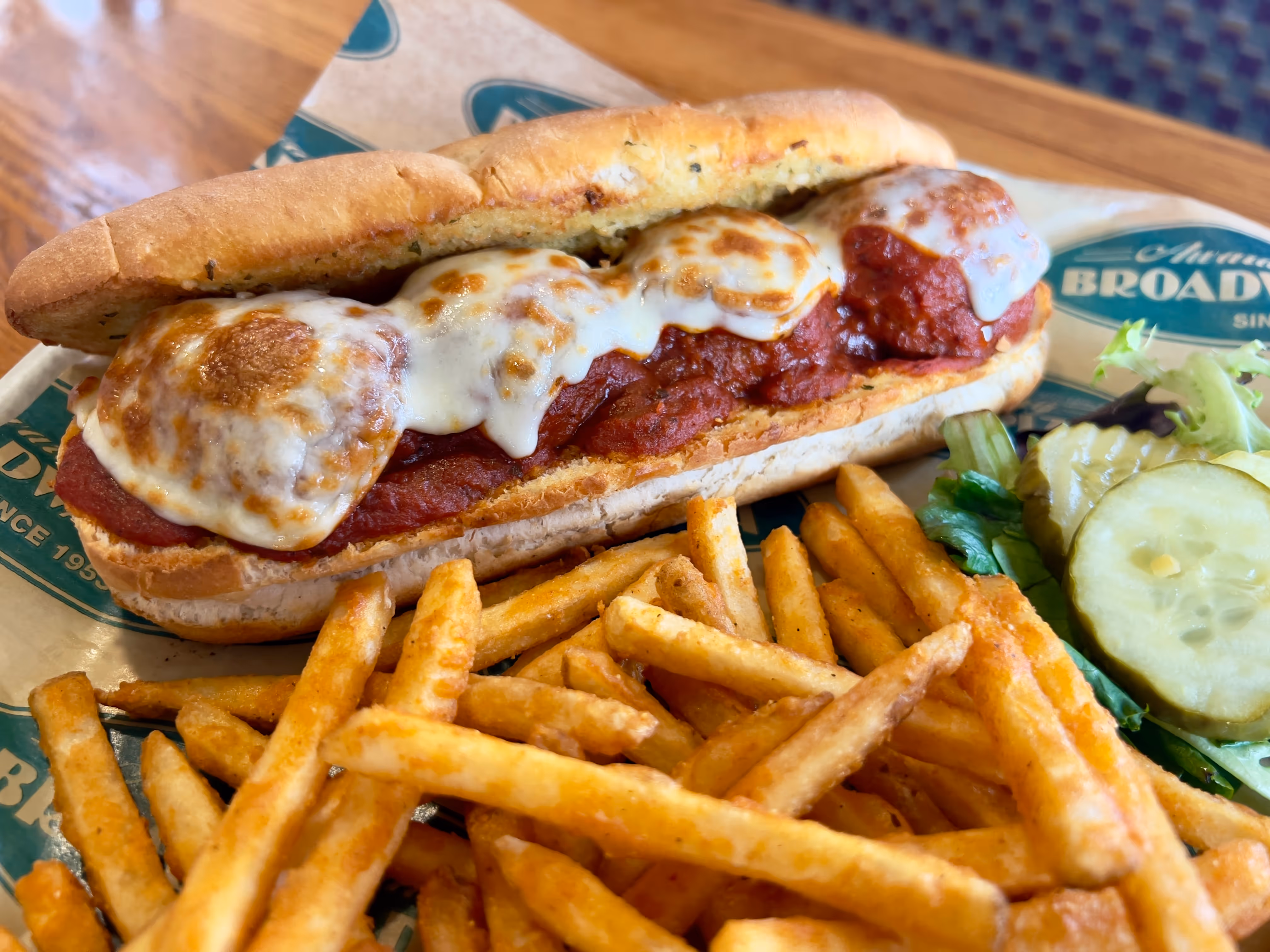 homemade meatballs, original broadway sauce & lots of melted mozzarella.