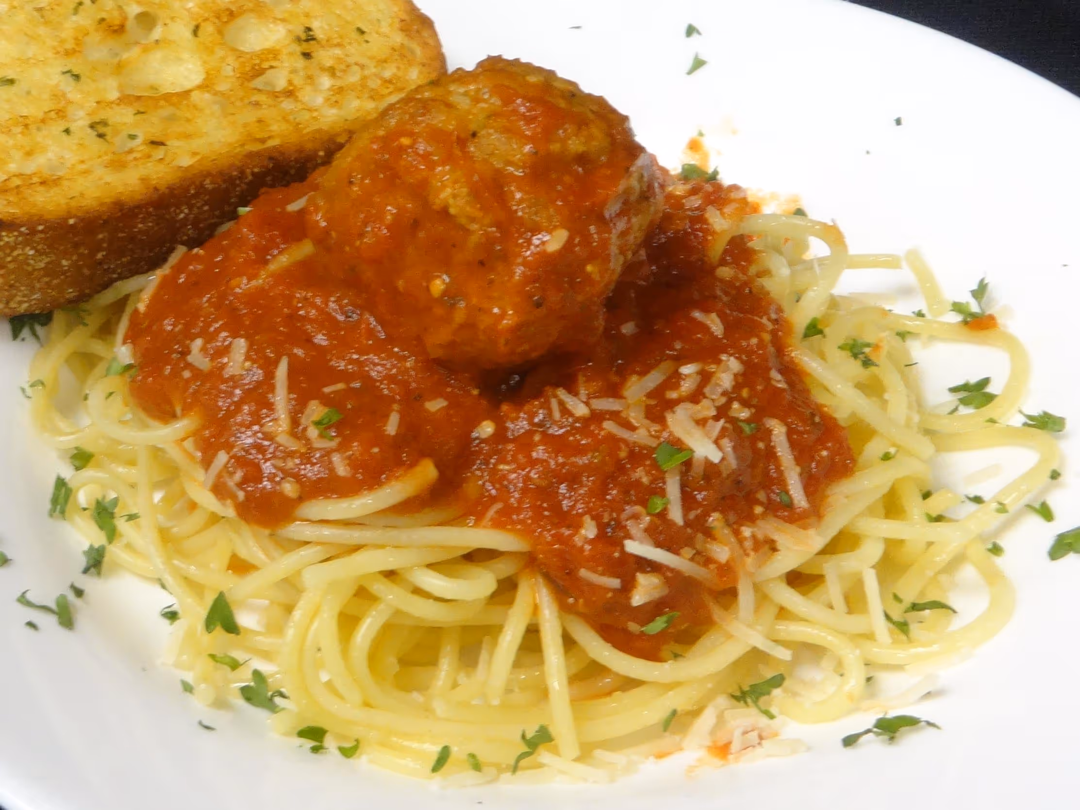 spaghetti noodles topped with original broadway sauce & three homemade meatballs.