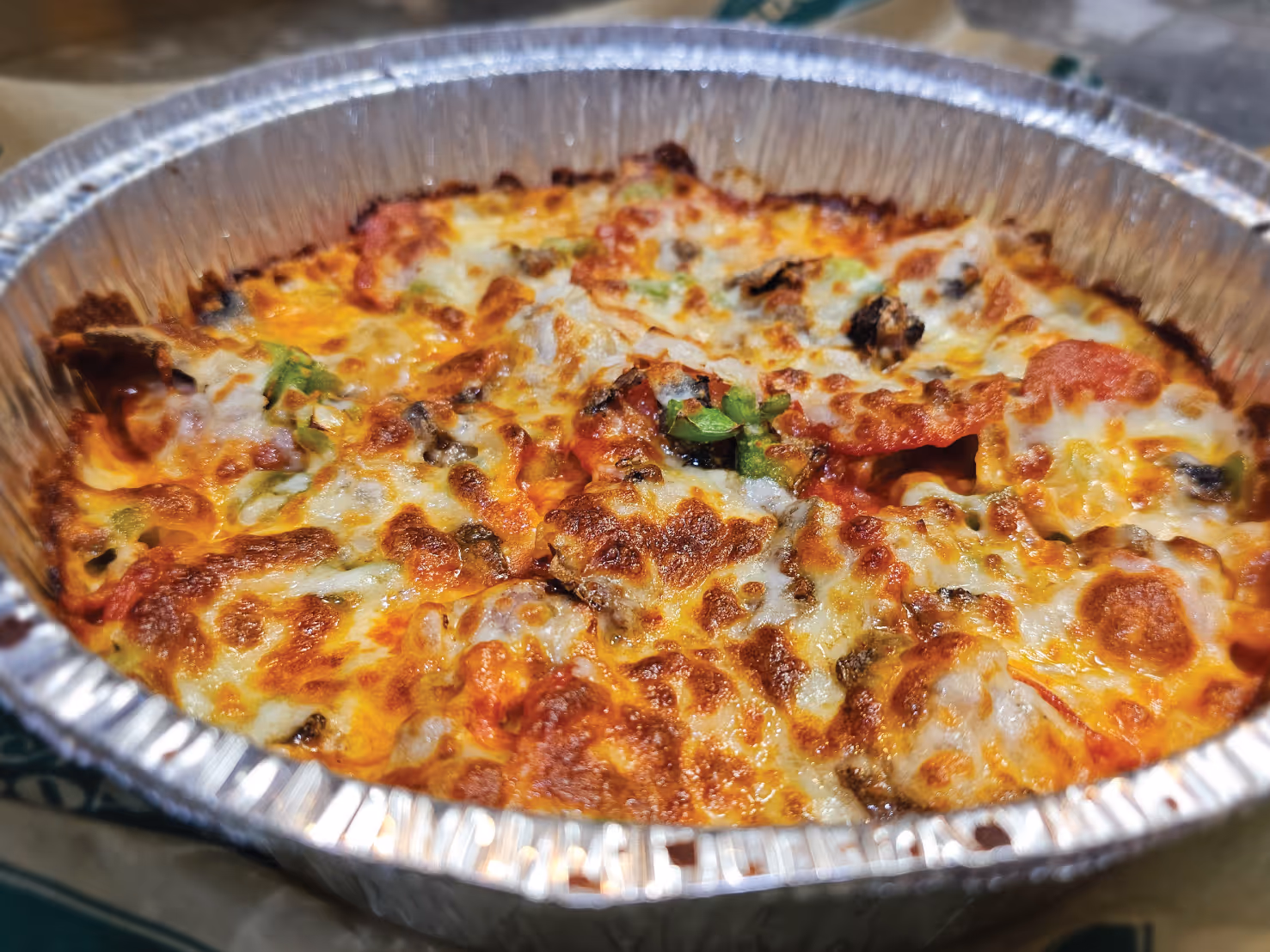 a twist on our most popular pizza! sporting the finest ingredients! pb italian sausage, pb pepperoni, fresh mushrooms, onion & green pepper with plant-based cheese on a crispy thin crust.